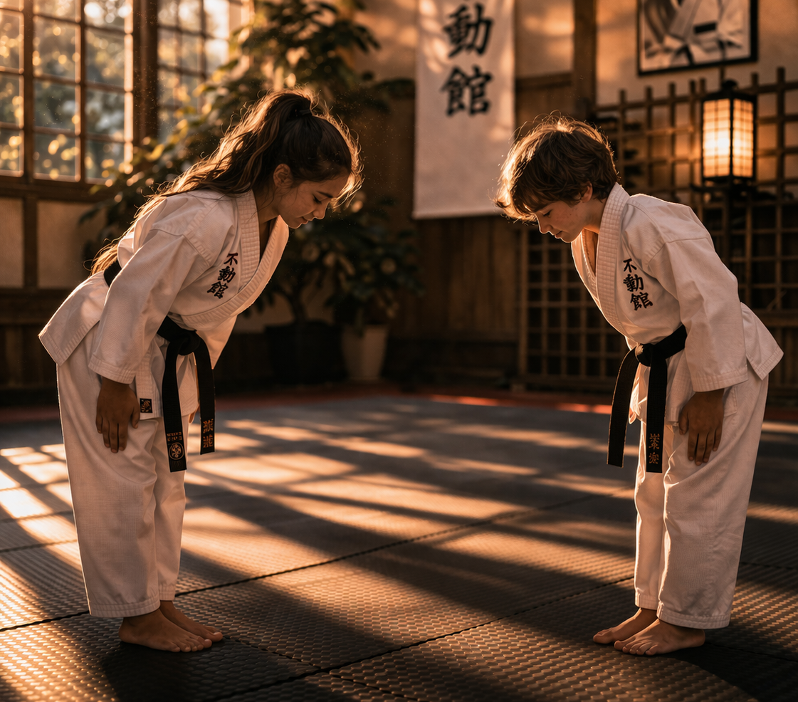 • Buga och hälsa mot de som är i dojon med ett tydligt Osu.